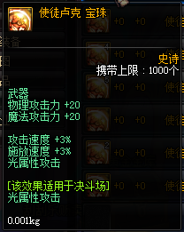 属性:物理/魔法攻击力+20,攻击速度/ 释放速度 +3%,光属性攻击