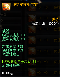 属性:物理/魔法攻击力+20,攻击速度/ 释放速度 +3%,冰属性攻击