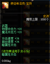 属性:物理/魔法攻击力+20,攻击速度/ 释放速度 +3%,暗属性攻击
