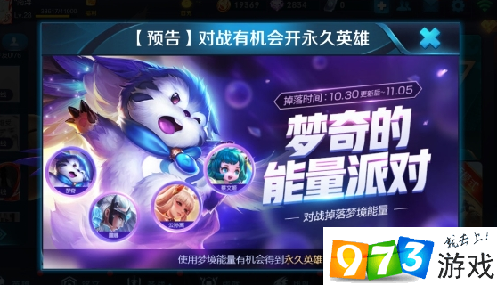 玩家在活动期间,参与对战,可额外获得掉落的梦奇能量,使用梦奇能量有机会获得永久英雄。