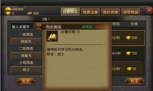 获得烈火剑法的第二个方法就是在交易行购买。玩家可以在交易行中使用元宝去购买玩家出售的烈火剑法,这种获得烈火剑法的方式是获得烈火剑法最简单的方式,只要玩家没事逛一逛交易行就能获得烈火剑法技能书。