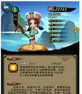 阿奴是一名苗族的美少女,她能够使用令人毛骨悚然人的驱虫之术。技能御蜂术是一个强大的毒性全体攻击,有百分十三十的伤害附加流血伤害。但是这个技能暂时有个bug,就是提升的会后毒性伤害没有提升,一直都是那些伤害。不知道在以后的版本中能不能得到进一步增强。当然大家可以不要小看阿奴这个技能的伤害,毕竟这个可以说百分比掉血的持续伤害,后期能够对boss和敌人造成超强的伤害。很多时候我们能不能杀掉boss全靠这个技能了。