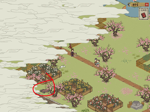 2、然后来到迷雾右边的位置的桃树下面即可得到。