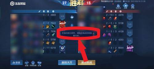 3、当对局结束来到结算界面中在右下角位置会看见回放录像的功能。