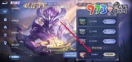 以上就是小编整理的关于《王者荣耀》峡谷寻宝好运口令兑换方法的全部内容,更多攻略请持续关注973游戏网。