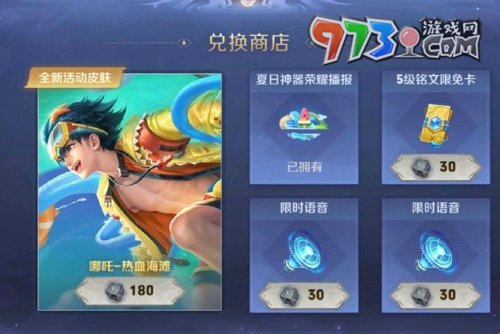 180主宰能量即可兑换哪吒--热血海滩皮肤了。