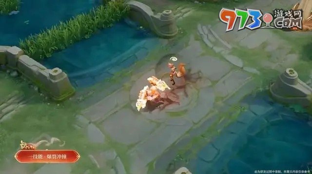 1、一技能爆裂冲撞。廉颇手持烧烤盾牌向指定方向冲锋。