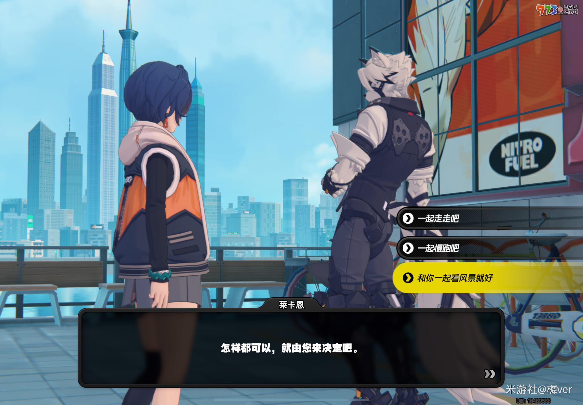 跟随任务指引来到江边找到莱卡恩,与他一起散步,对话可以随意选择;