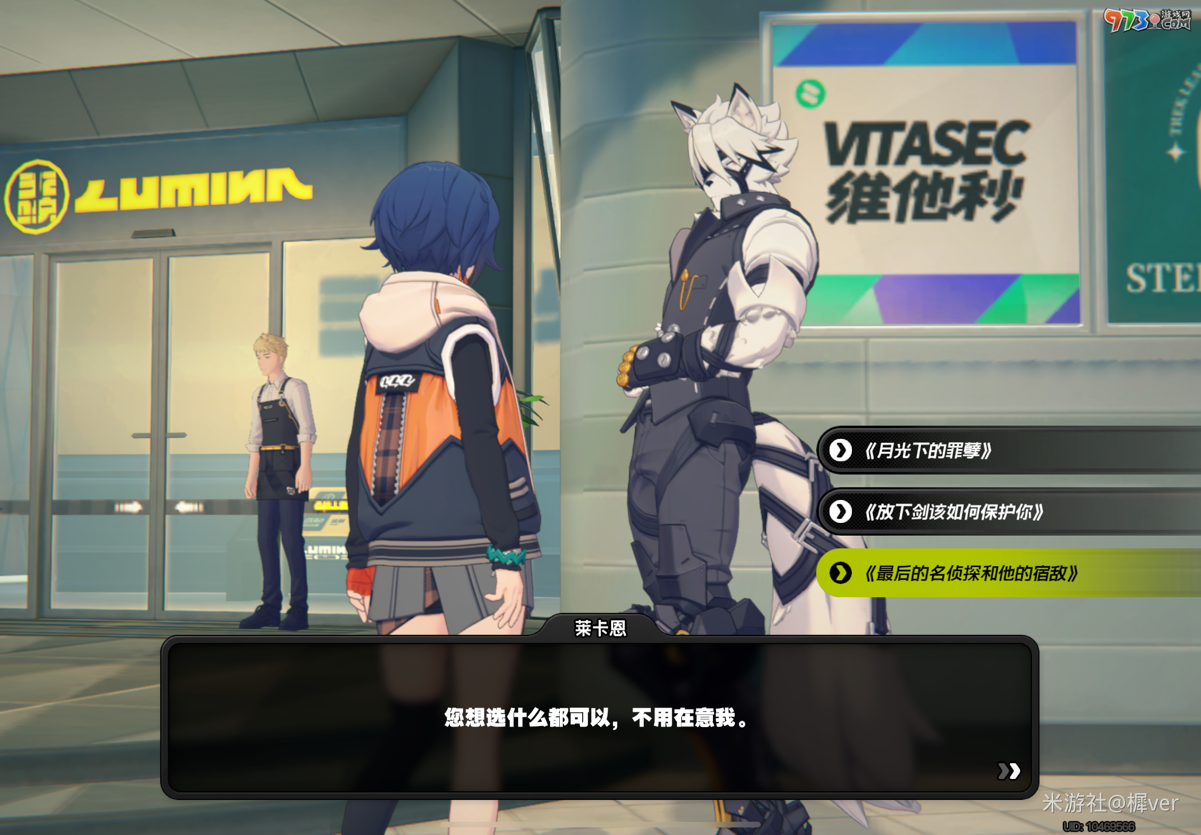 跟随任务指引找到莱卡恩,他已经准备好零食饮料,就等绳匠选影片了!选择“《最后的名侦探和他的宿敌》”