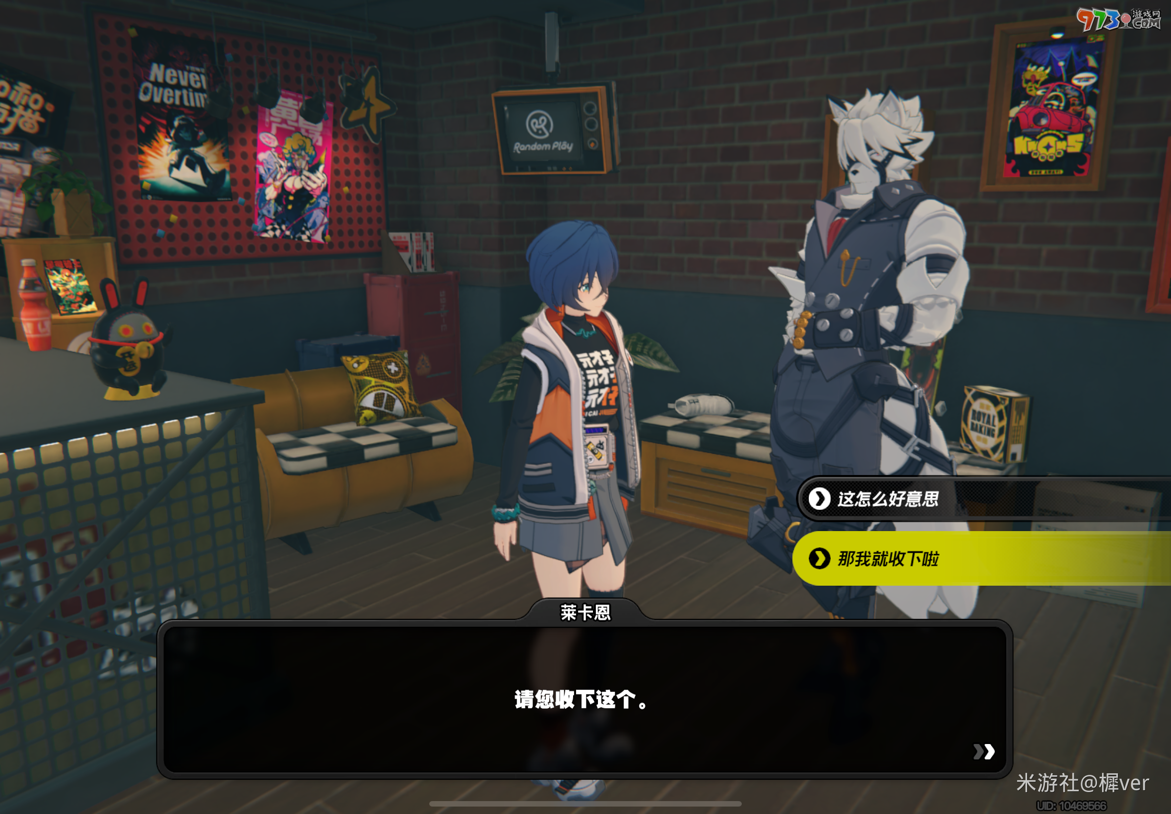 在录像店一楼见到莱卡恩,他带着礼物前来拜访,选择“那我就收下啦”