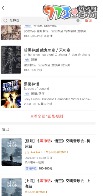 2、进入到主界面,在搜索框内输入黑神话悟空点击搜索,在搜索内容演出栏即可看到巡演站点;