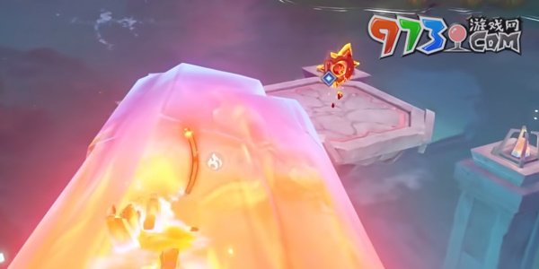 6、攻击震颤晶石引发共振,操作小龙来到水池中的机关旁。