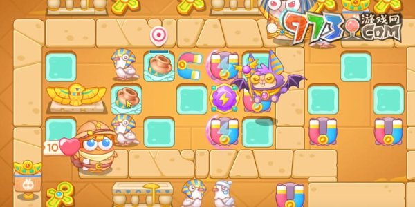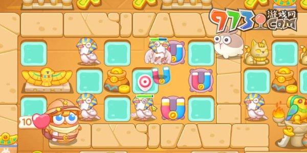 1、开局在正中间放置两个磁铁,把下方磁铁升至满级,标记指定方位清理障碍物道具。