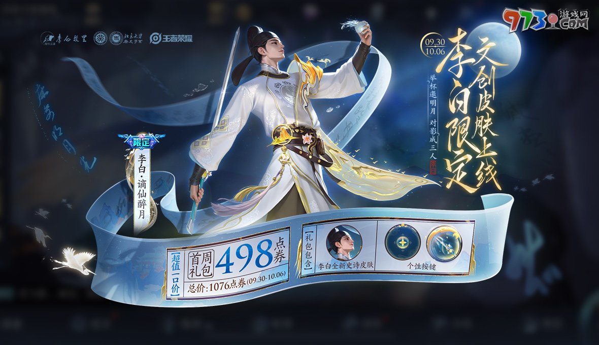 可获得李白-谪仙醉月皮肤x1、谪仙醉月个性按键-邀月x1