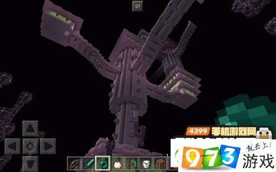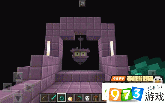 2.在末地城堡的其中一条路有一个门,门的正前方是一艘浮空的末地船,我们的目标鞘翅就藏在末影船里面!
