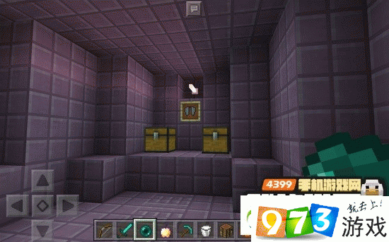 3.搭方块或者丢末影之眼来到末影船上,进入船舱就可以看到一个物品展示框,展示框上放着我们梦寐以求的鞘翅!