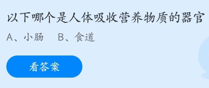 人体中的器官每一项都很重要,维护着人们的正常生活,五脏暗含五行生生不息,小伙伴们知道人体之中的哪个器官是人体吸收营养物质的器官呢?下面小编就给大家带来支付宝蚂蚁庄园2023年5月31日每日一题答案,感兴趣的小伙伴快来看一看吧。
