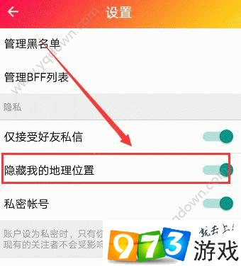 2、在设置的功能里有【隐藏我的地理位置】的功能,开启即可隐藏。
